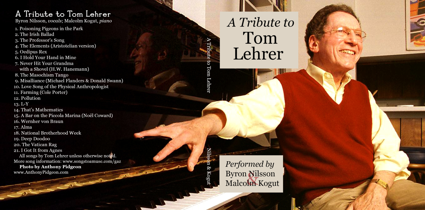 On April 9, 2021, as Tom Lehrer celebrated (or whatever he did with it) his 93rd birthday, Malcolm Kogut and I elevatored up to the second floor – the music room – of Caffè Lena, legendary coffeehouse in Saratoga Springs, NY. The caffè recently had begun welcoming an audience as the Coronavirus pandemic eased (as we optimistically thought at the time), and we prepared to inflict upon them the words and music of one of the world’s greatest musical satirists. Although that’s not a good term to use for Lehrer. He’s one of the world’s greatest songwriters, insofar as he melded lyrics and music into polished gems of art songs that just happen to deliver a witty payload. This is because he not only knows how to write a musical miniature but also the rarefied skill of crafting lyrics to those tunes. Comic verse works only when it rhymes correctly, and Lehrer’s rhymes are the best.